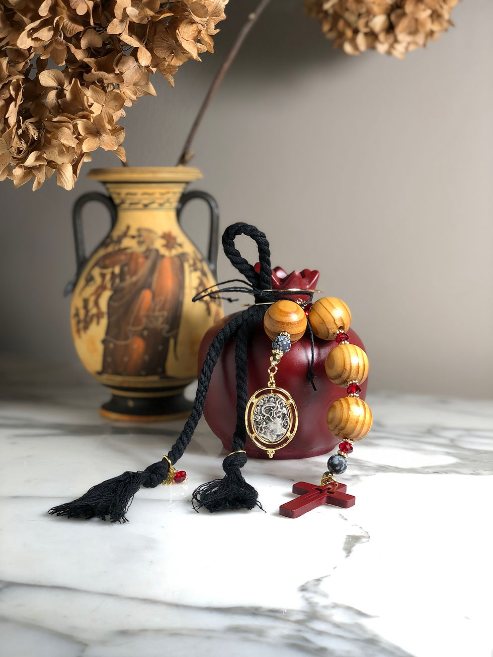 Olive Wood ‘RODI’ Pomegranate Alexander the Great, Cross Home Decor - Large